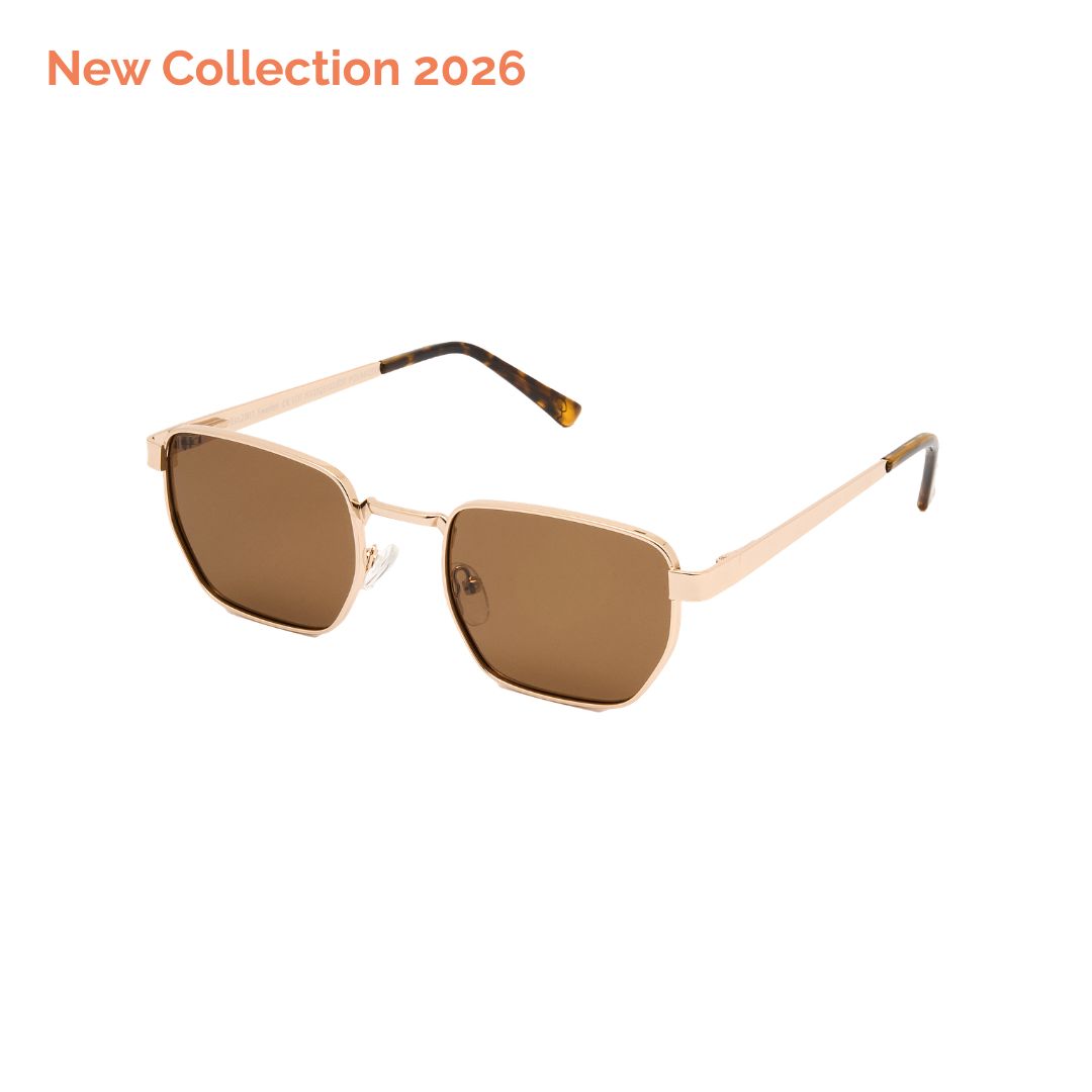 La AW68 Gold Brown combina una montura metálica en acabado dorado con lentes en tono marrón, creando un conjunto más cálido y equilibrado.